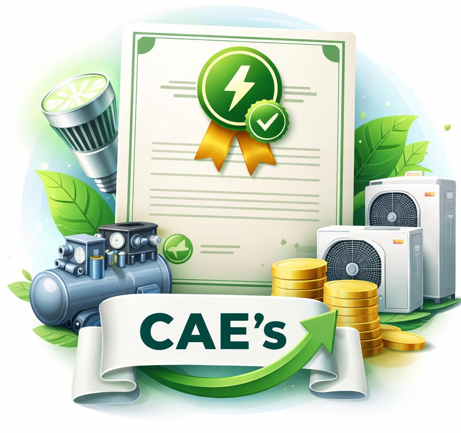 Los Certificados de Ahorro Energético (CAE) son el reconocimiento oficial de que una empresa ha reducido su consumo energético gracias a una actuación de eficiencia.